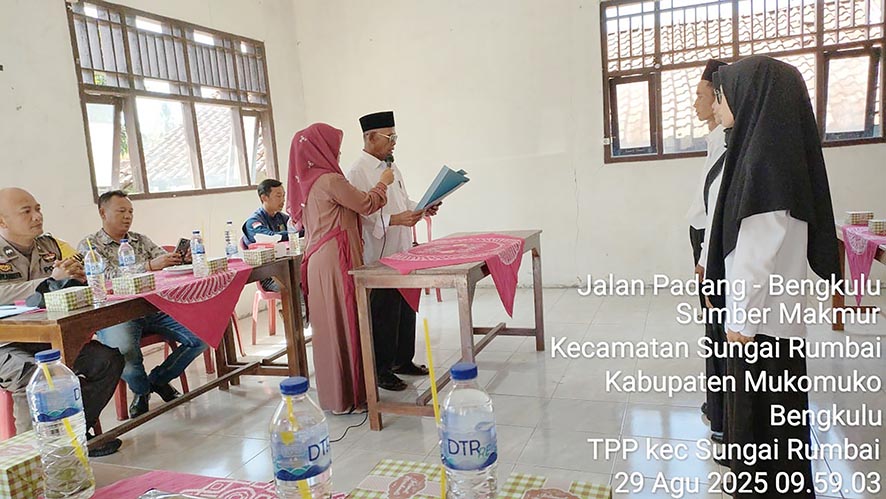 Prosesi pelantikan 3 orang perangkat Desa Sumber Makmur.-Dedi Sumanto-Radar Mukomuko