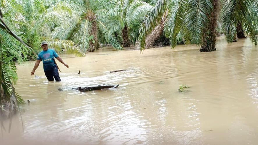 Sebenarnya dijelaskan Pujianto, bukan hanya kebun sawit milik masyarakat Padang Gading saja, yang terdampak banjir akibat luapan Sungai Air Hitam ini. Tetapi ada 4 desa.