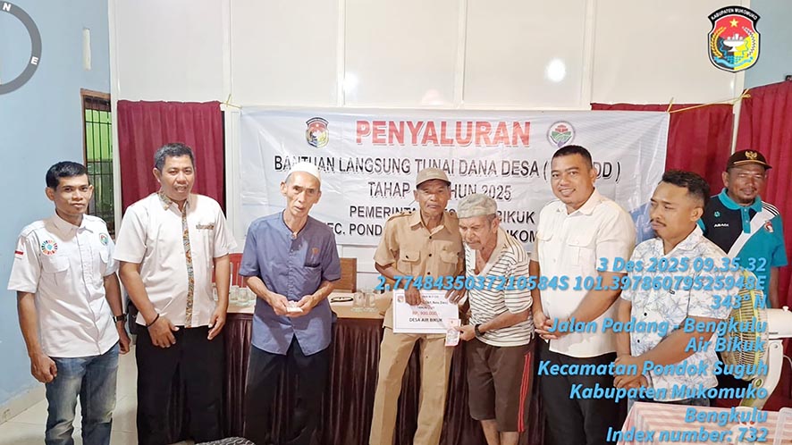 koranrm.id - Pemerintah Desa (Pemdes) Air Bikuk Kecamatan Pondok Suguh Mukomuko, salah satu desa yang berhasil dan sukses memaksimalkan serapan anggaran yang bersumber dari Dana Desa (DD) tahun anggaran 2025. Baik anggaran untuk kegiatan yang sudah ditentukan penggunaannya (Earmarked) mapun anggaran yang tidak ditentukan penggunaannya Non Earmarked. Semua sudah terealisasi sesuai perencanaan yang sudah ditetapkan dalam dokumen Anggaran Pendapatan dan Belanja Desa (APBDes) Tahun Anggaran (TA) 2025 ini. Salah satu kegiatan yang bersumber dari dana Earmarked atau anggaran yang sudah ditentukan untuk penggunaannya. Yaitu program Bantuan Langsung Tunai Dana Desa (BLT-DD). Semuanya sudah disalurkan sesuai aturan dan regulasi.