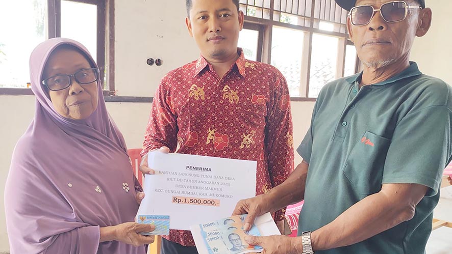 koranrm.id - Sebenyak 13 warga Desa Sumber Makmur Kecamatan Sungai Rumbai Mukomuko Bengkulu, sebelum tutup tahun 2025 ini, kembali menerima bantuan tunai sebesar Rp 1.500.000. Dimana bantuan itu adalah Bantuan Langsung Tunai Dana Desa (BLT-DD) yang bersumber langusng dari Dana Desa (DD) Tahun Anggaran (TA) 2025. Kemudian 13 warga yang menerima bantuan tersebut, adalah warga yang ditetapkan sebagai Keluarga Penerima Manfaat (KPM). Dimana untuk 13 warga yang ditetapkan menjadi penerima bantuan ini, adalah warga yang dikategorikan miskin ekstrim. Mereka ditetapkan sebagai KPM BLT-DD atas kesepakatan bersama melalui Musyawarah Desa Khusus (Musdesus).