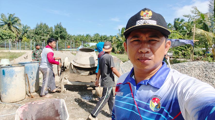 Kades Padang Gading monitor pembangunan gerai KDMP.-Dedi Sumanto-Radar Mukomuko